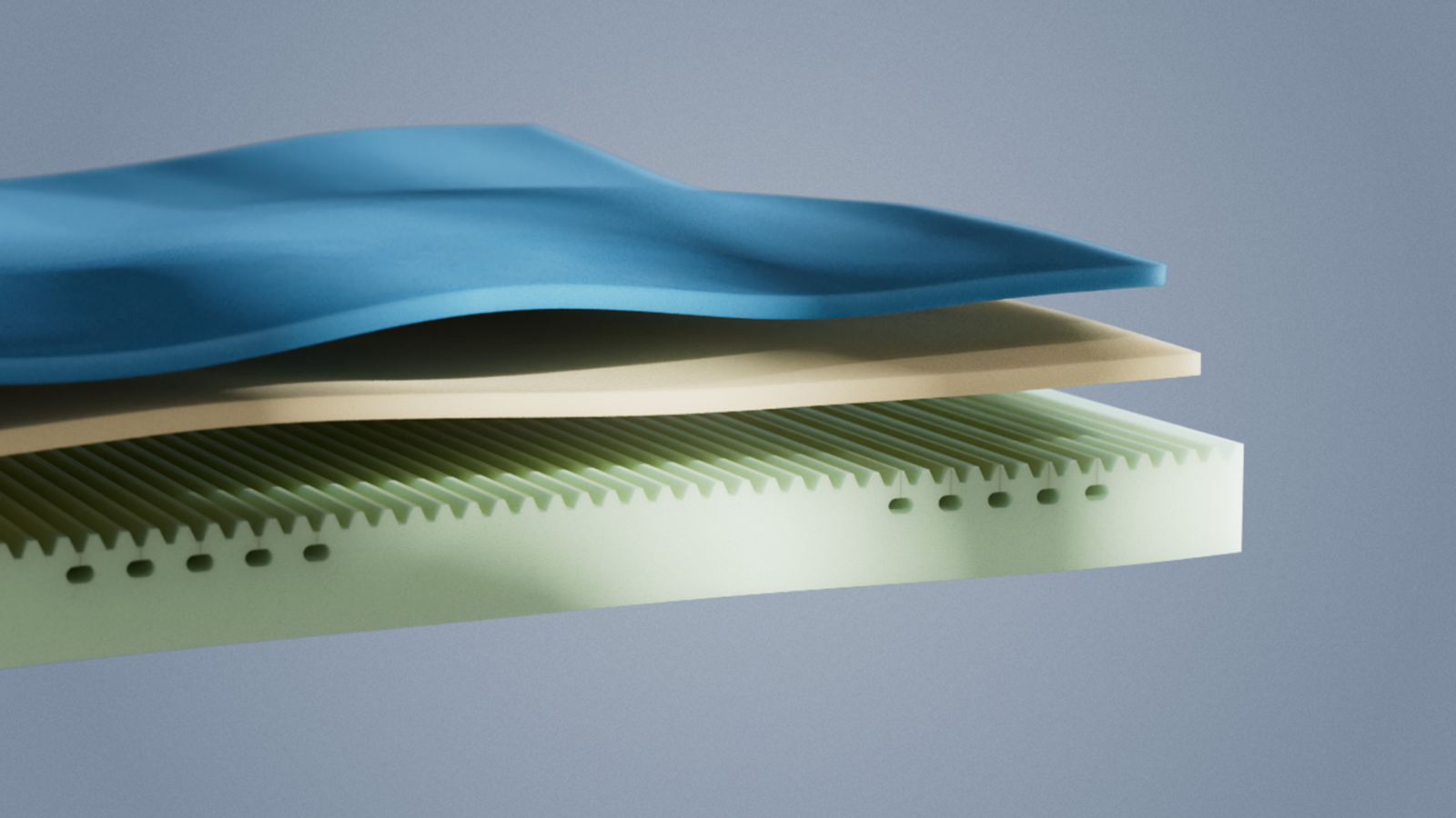 Nuestra espuma Airgocell®, altamente transpirable, permite que el aire circule libremente a través de sus celdas abiertas, liberando la humedad y creando un entorno de descanso fresco y confortable.
